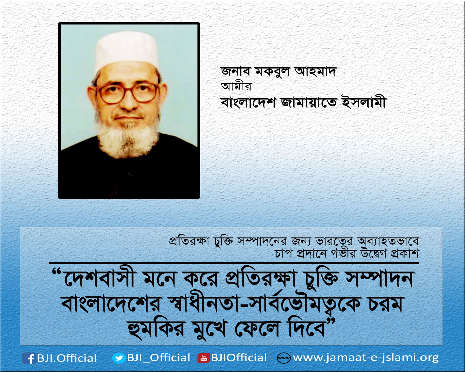 প্রতিরক্ষা চুক্তি সম্পাদনের জন্য ভারতের অব্যাহতভাবে চাপ প্রদানে গভীর উদ্বেগ প্রকাশ