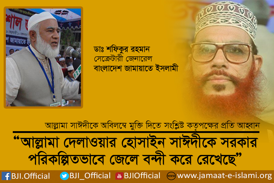 আল্লামা সাঈদীকে অবিলম্বে মুক্তি দিতে সংশ্লিষ্ট কর্তৃপক্ষের প্রতি আহ্বান