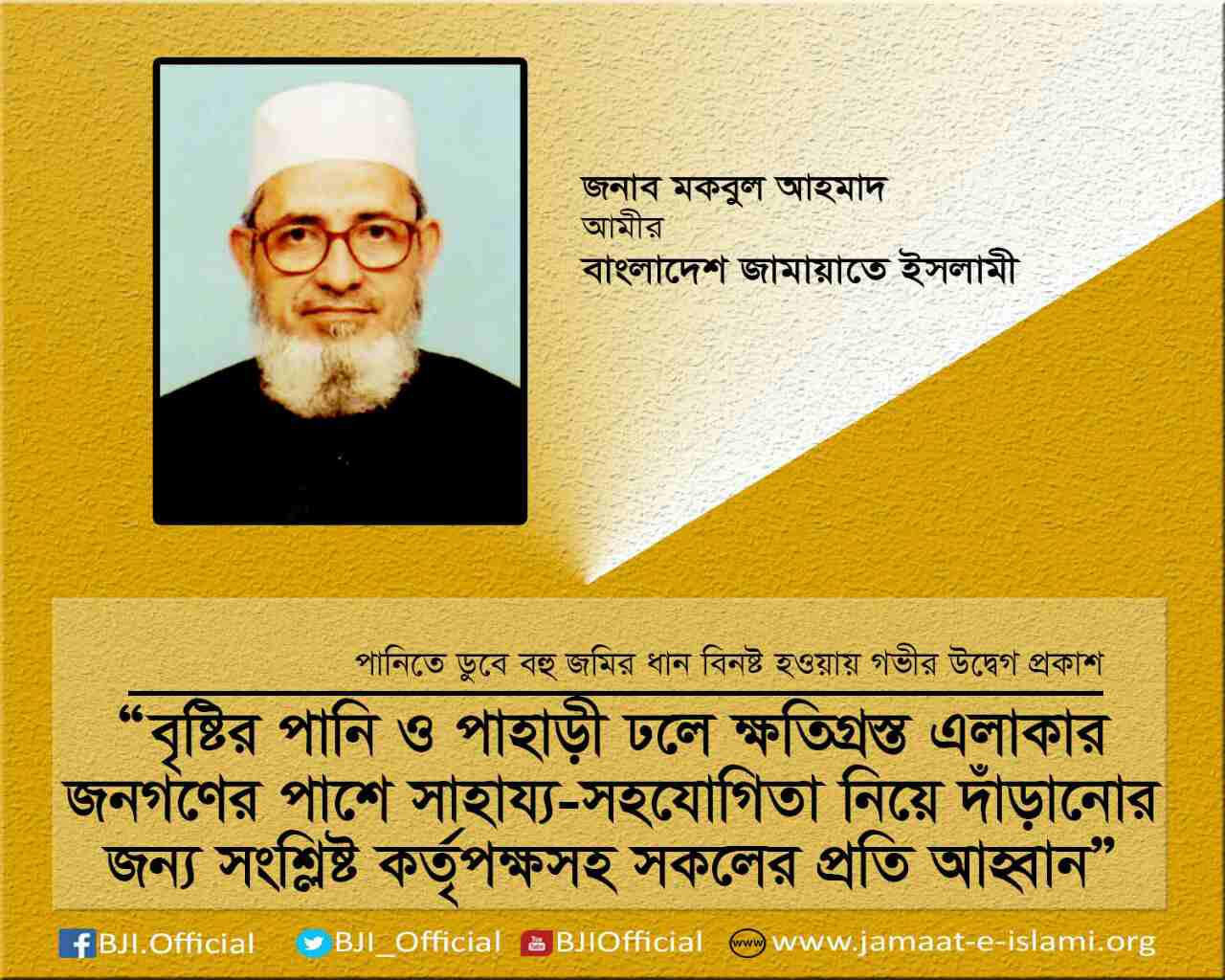 পানিতে ডুবে বহু জমির ধান বিনষ্ট হওয়ায় গভীর উদ্বেগ প্রকাশ