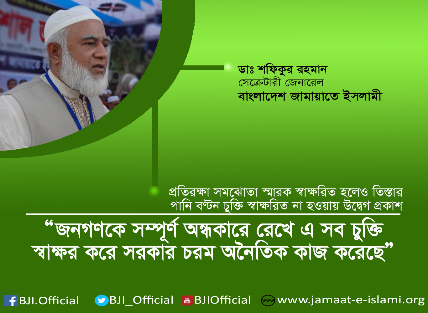 প্রতিরক্ষা সমঝোতা স্মারকসহ সকল প্রকার চুক্তি জনগণকে হুবহু জানানোর আহ্বান