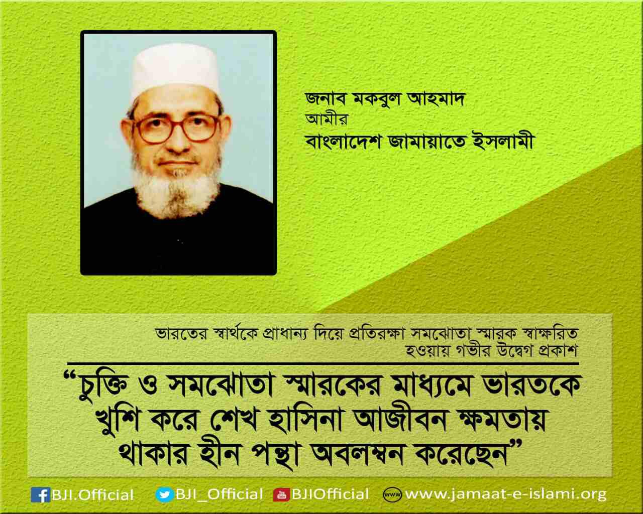 ভারতে সংগে সমঝোতা স্মারকের বক্তব্য জাতির সামনে অবিলম্বে প্রকাশ করার আহ্বান
