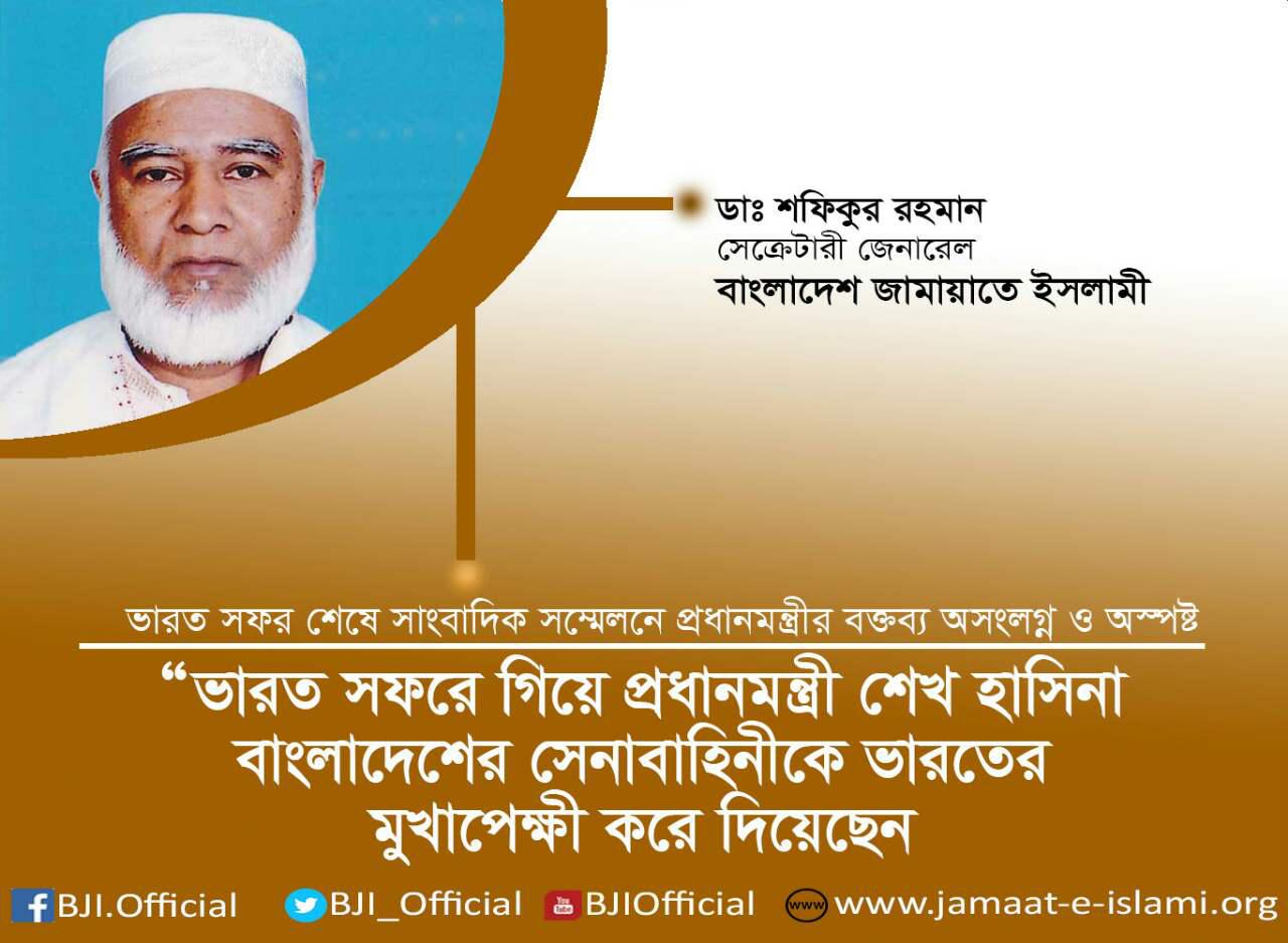ভারত সফর শেষে সাংবাদিক সম্মেলনে প্রধানমন্ত্রীর বক্তব্য অসংলগ্ন ও অস্পষ্ট