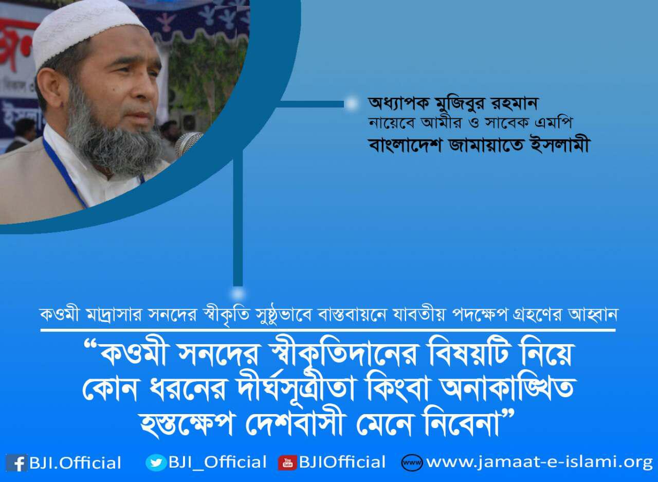 কওমী মাদ্রাসার সনদের স্বীকৃতি সুষ্ঠুভাবে বাস্তবায়নে যাবতীয় পদক্ষেপ গ্রহণের আহ্বান