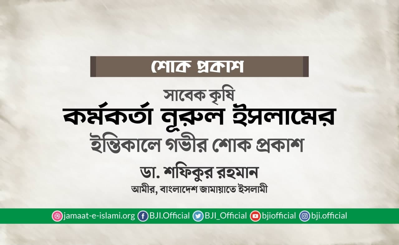সাবেক কৃষি কর্মকর্তা জনাব নূরুল ইসলামের ইন্তিকালে গভীর শোক প্রকাশ