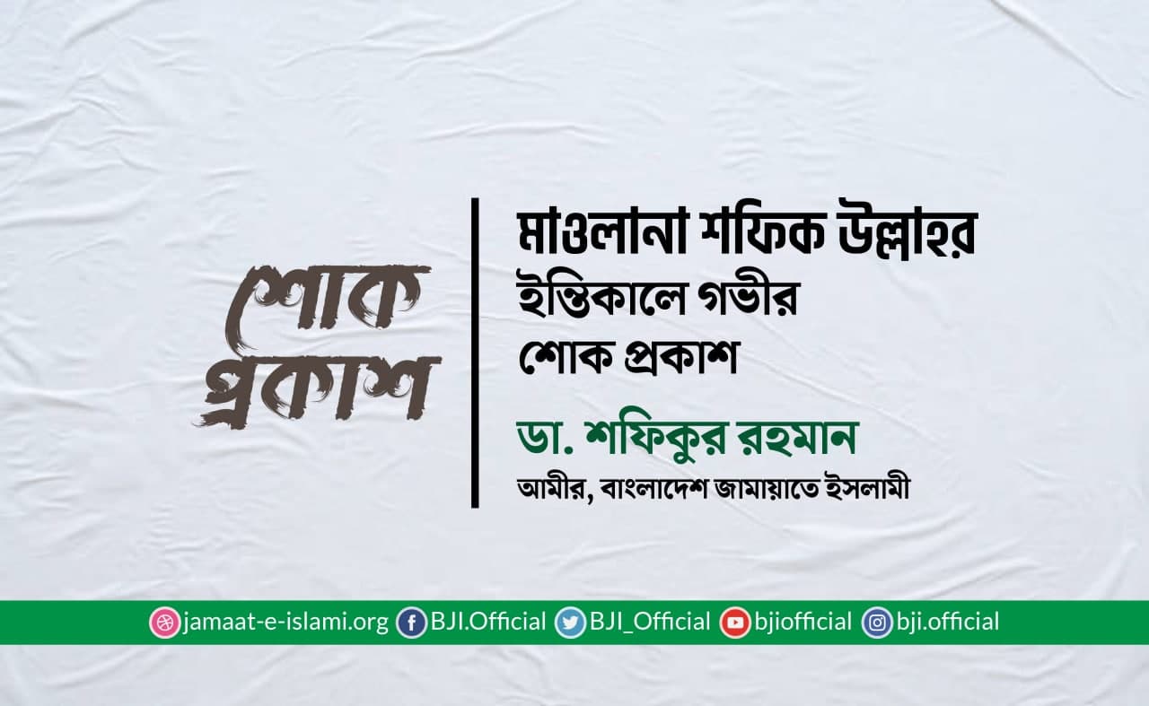 মাওলানা শফিক উল্লাহর ইন্তিকালে গভীর শোক প্রকাশ