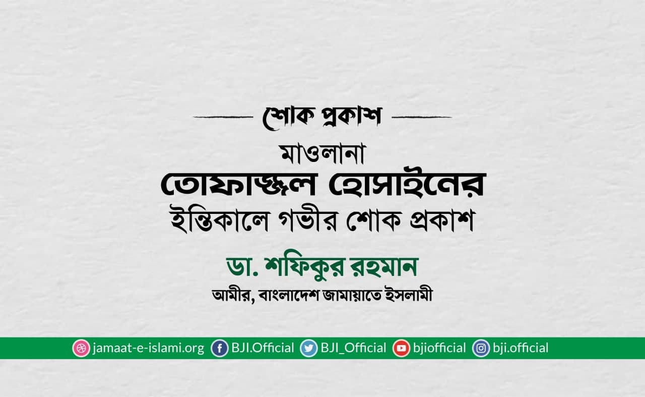 মাওলানা তোফাজ্জল হোসাইনের ইন্তিকালে গভীর শোক প্রকাশ