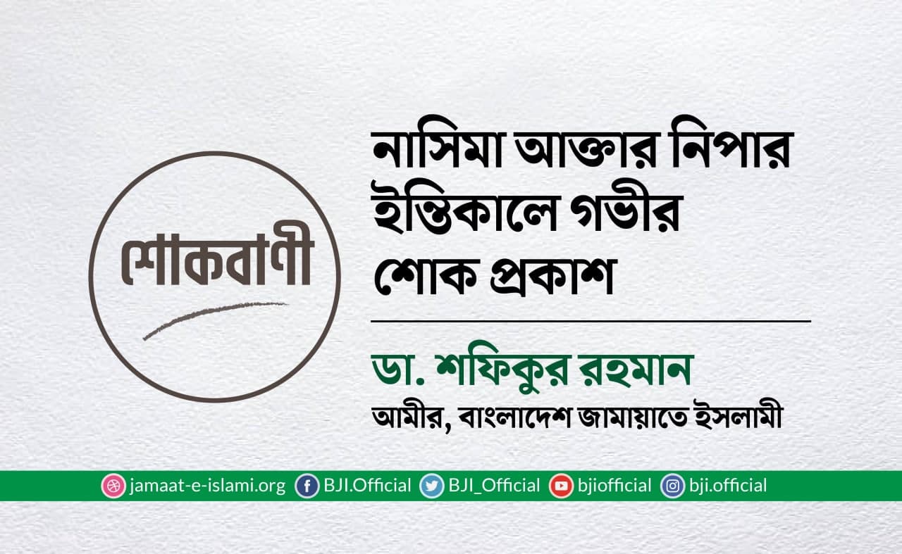 নাসিমা আক্তার নিপার ইন্তিকালে গভীর শোক প্রকাশ