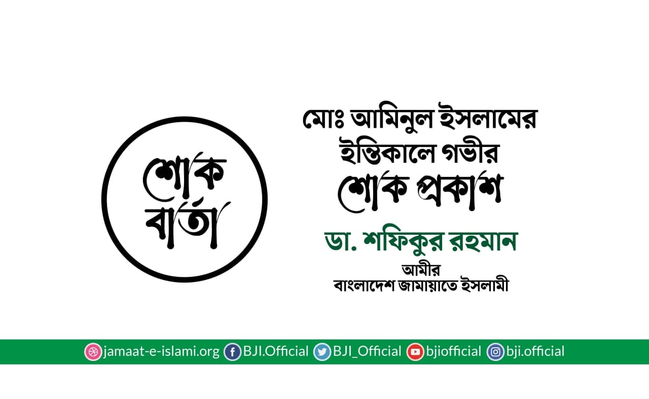 মোঃ আমিনুল ইসলামের ইন্তিকালে গভীর শোক প্রকাশ