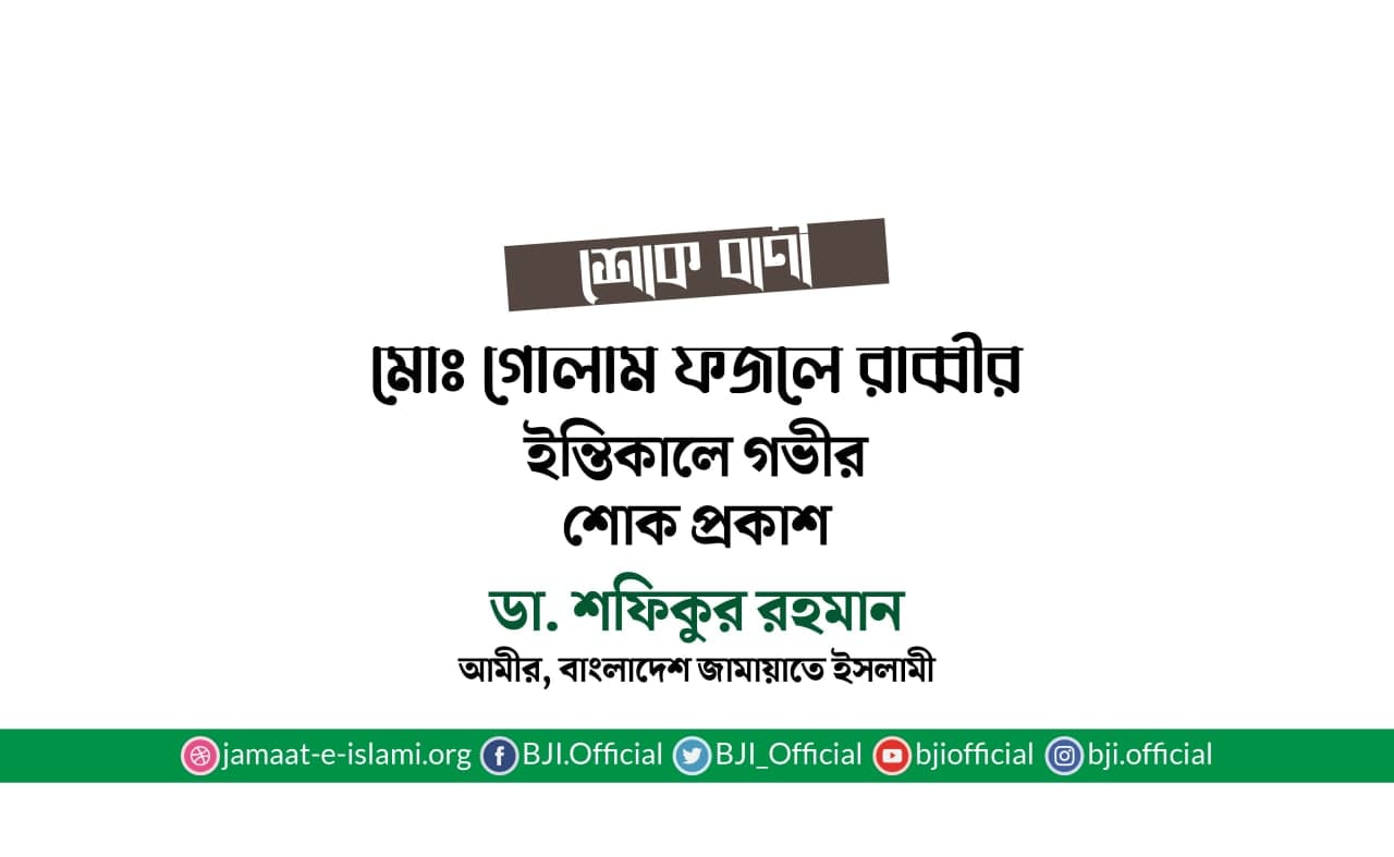 মোঃ গোলাম ফজলে রাব্বীর ইন্তিকালে গভীর শোক প্রকাশ