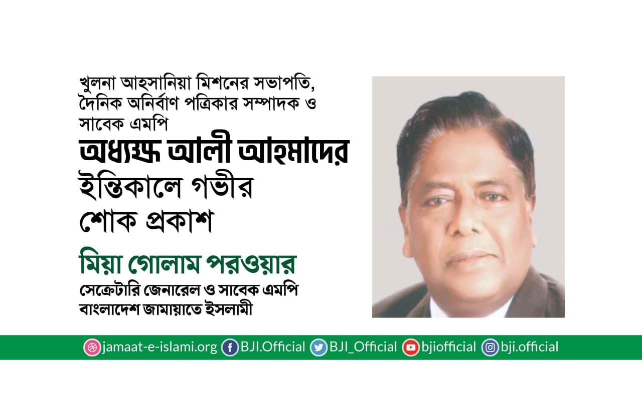 জালাল আহমাদের ইন্তিকালে গভীর শোক প্রকাশ