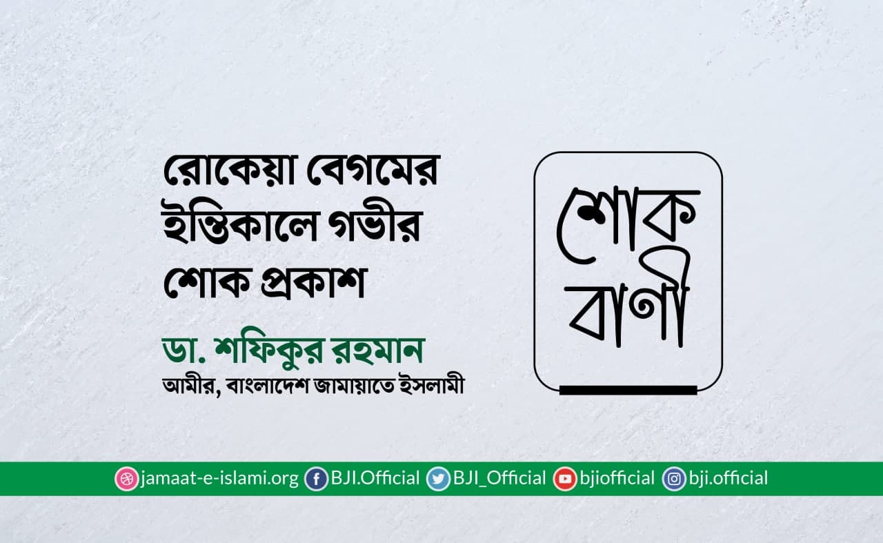 রোকেয়া বেগমের ইন্তিকালে গভীর শোক প্রকাশ