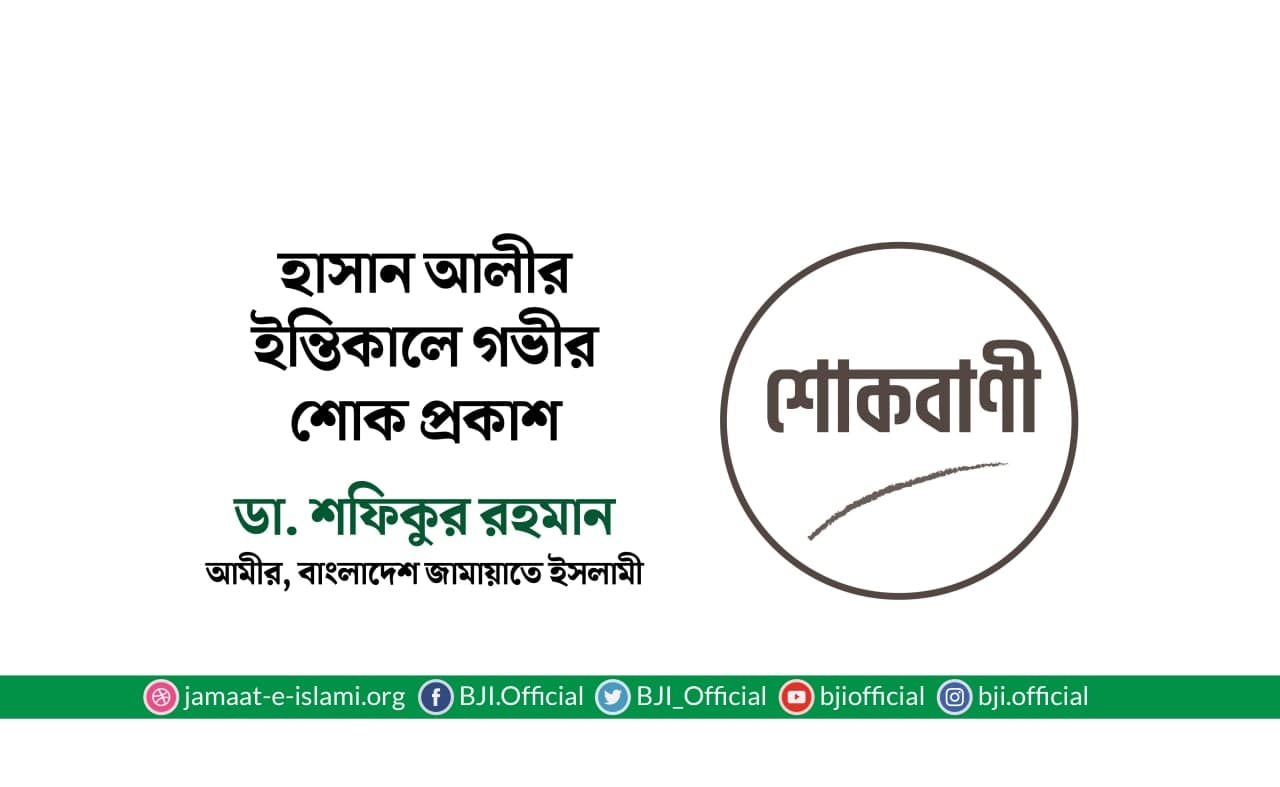 হাসান আলীর ইন্তিকালে গভীর শোক প্রকাশ