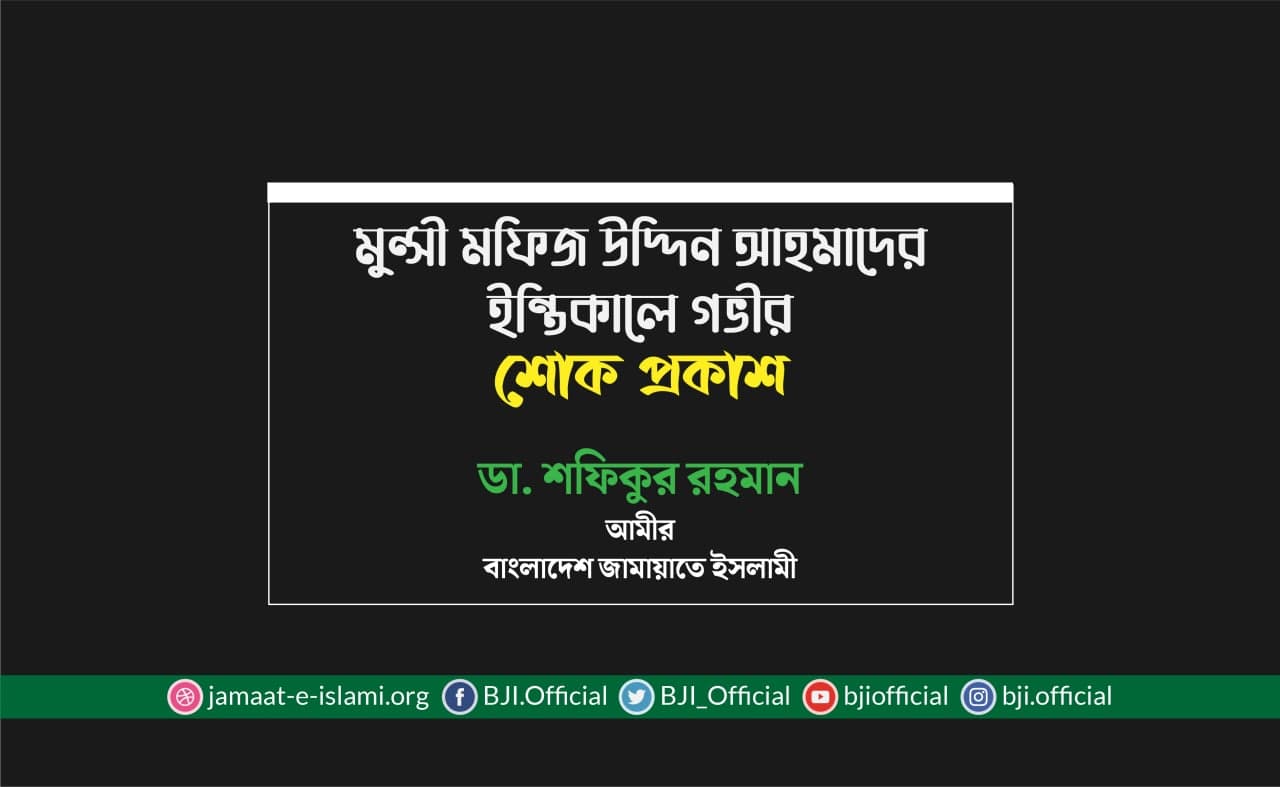 মুন্সী মফিজ উদ্দিন আহমাদের ইন্তিকালে গভীর শোক প্রকাশ