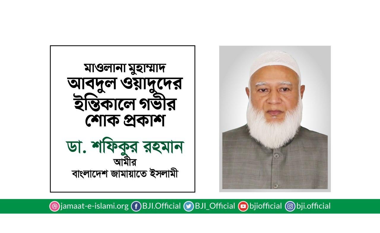 মাওলানা মুহাম্মাদ আবদুল ওয়াদুদের ইন্তিকালে গভীর শোক প্রকাশ
