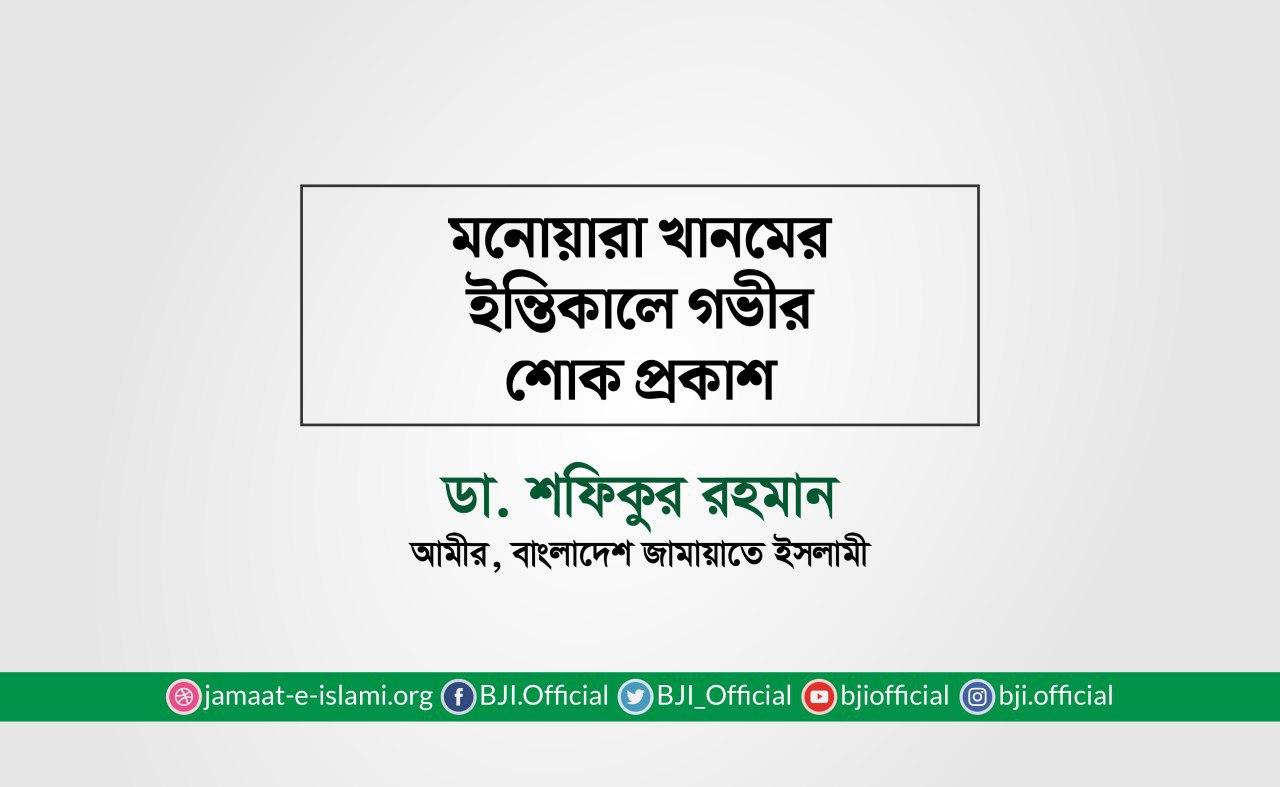মনোয়ারা খানমের ইন্তিকালে গভীর শোক প্রকাশ