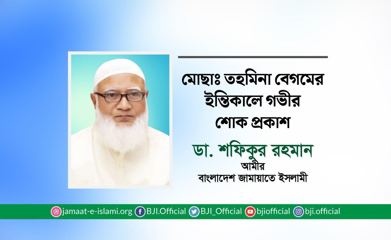মোছাঃ তহমিনা বেগমের ইন্তিকালে গভীর শোক প্রকাশ