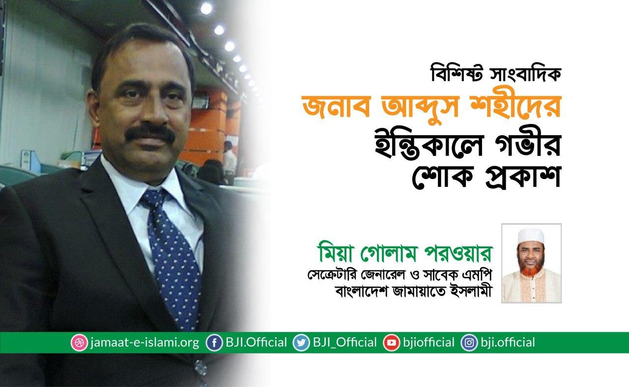 বিশিষ্ট সাংবাদিক জনাব আব্দুস শহীদের ইন্তিকালে গভীর শোক প্রকাশ