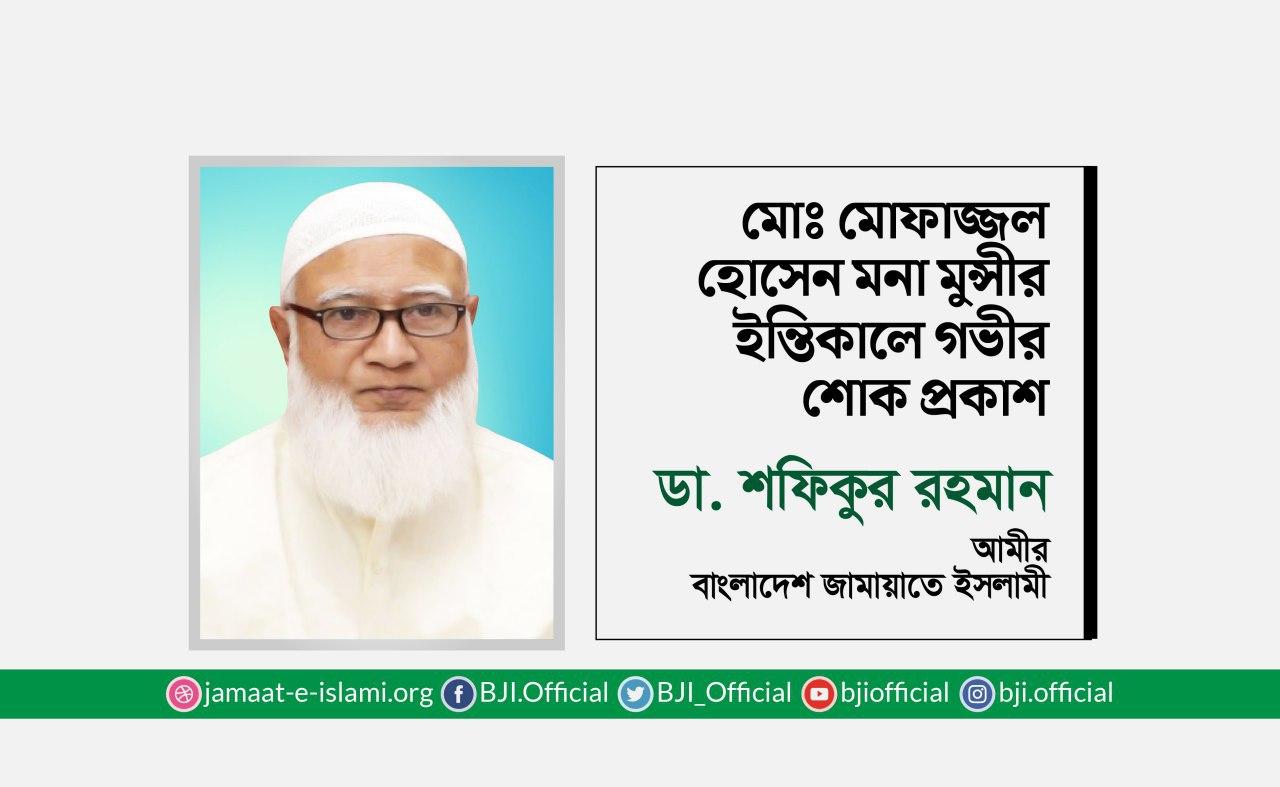 মোঃ মোফাজ্জল হোসেন মনা মুন্সীর ইন্তিকালে গভীর শোক প্রকাশ