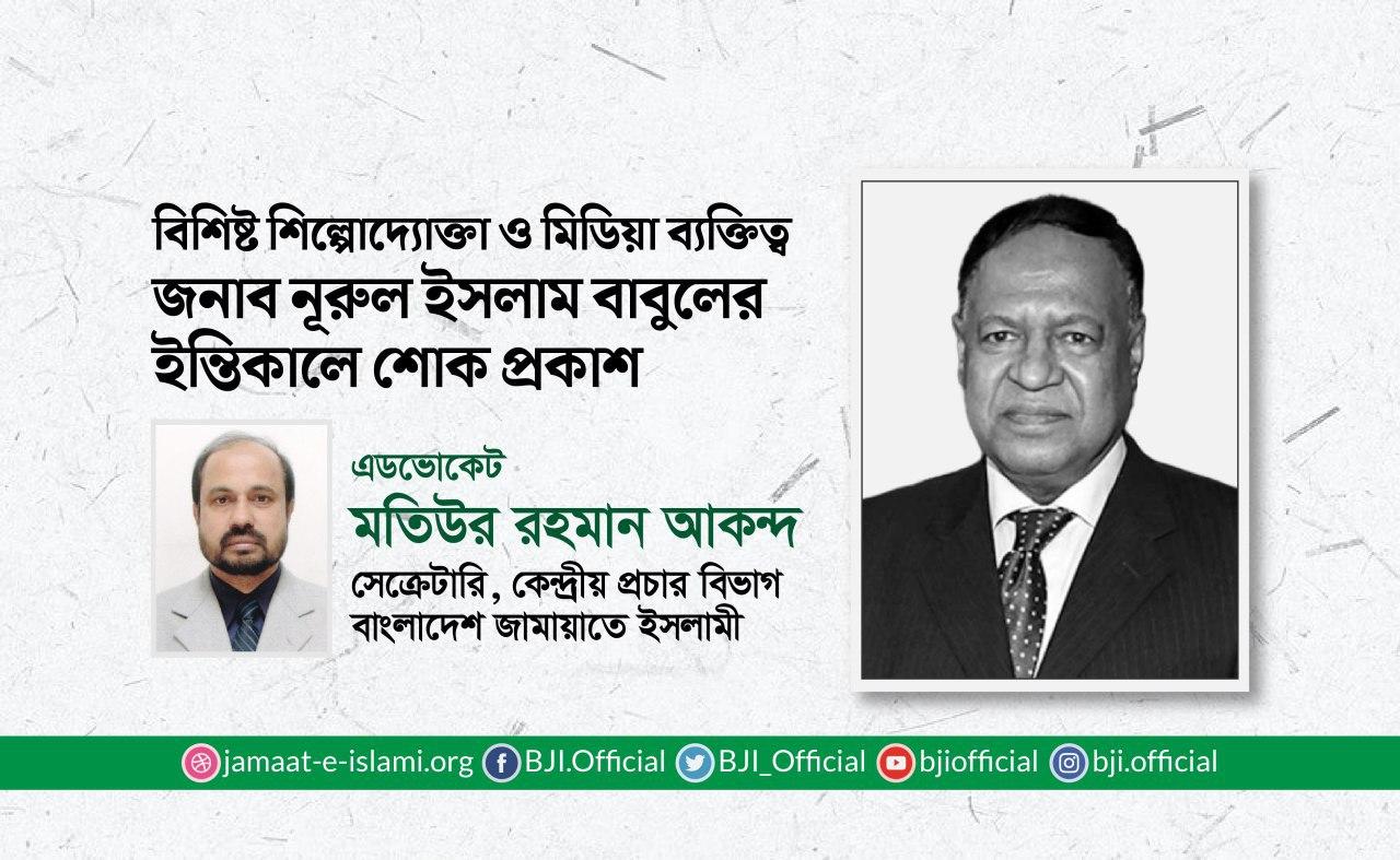 বিশিষ্ট শিল্পোদ্যোক্তা ও মিডিয়া ব্যক্তিত্ব জনাব নূরুল ইসলাম বাবুলের ইন্তিকালে শোক প্রকাশ