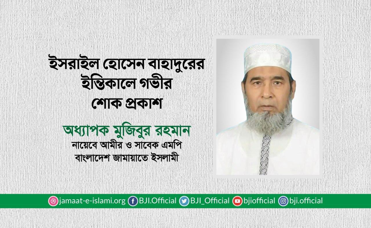 মোঃ ইসরাইল হোসেন বাহাদুরের ইন্তিকালে গভীর শোক প্রকাশ