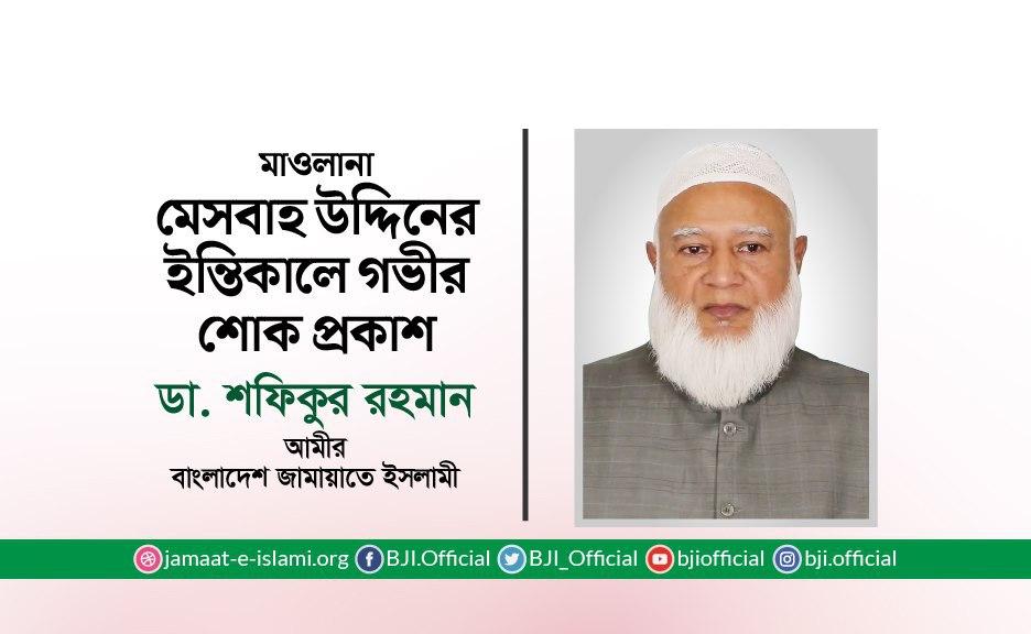 মাওলানা মেসবাহ উদ্দিনের ইন্তিকালে গভীর শোক প্রকাশ