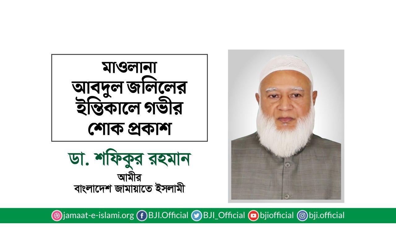 মাওলানা আবদুল জলিলের ইন্তিকালে গভীর শোক প্রকাশ