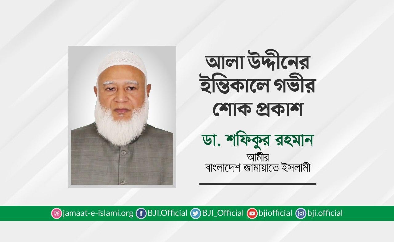 আলা উদ্দীনের ইন্তিকালে গভীর শোক প্রকাশ
