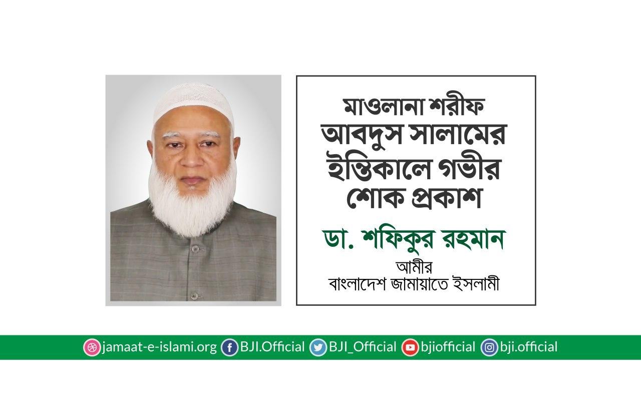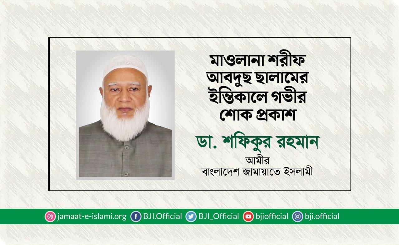 মাওলানা শরীফ আবদুস সালামের ইন্তিকালে গভীর শোক প্রকাশ