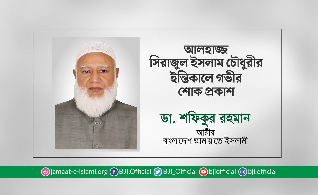 আলহাজ্জ সিরাজুল ইসলাম চৌধুরীর ইন্তিকালে গভীর শোক প্রকাশ