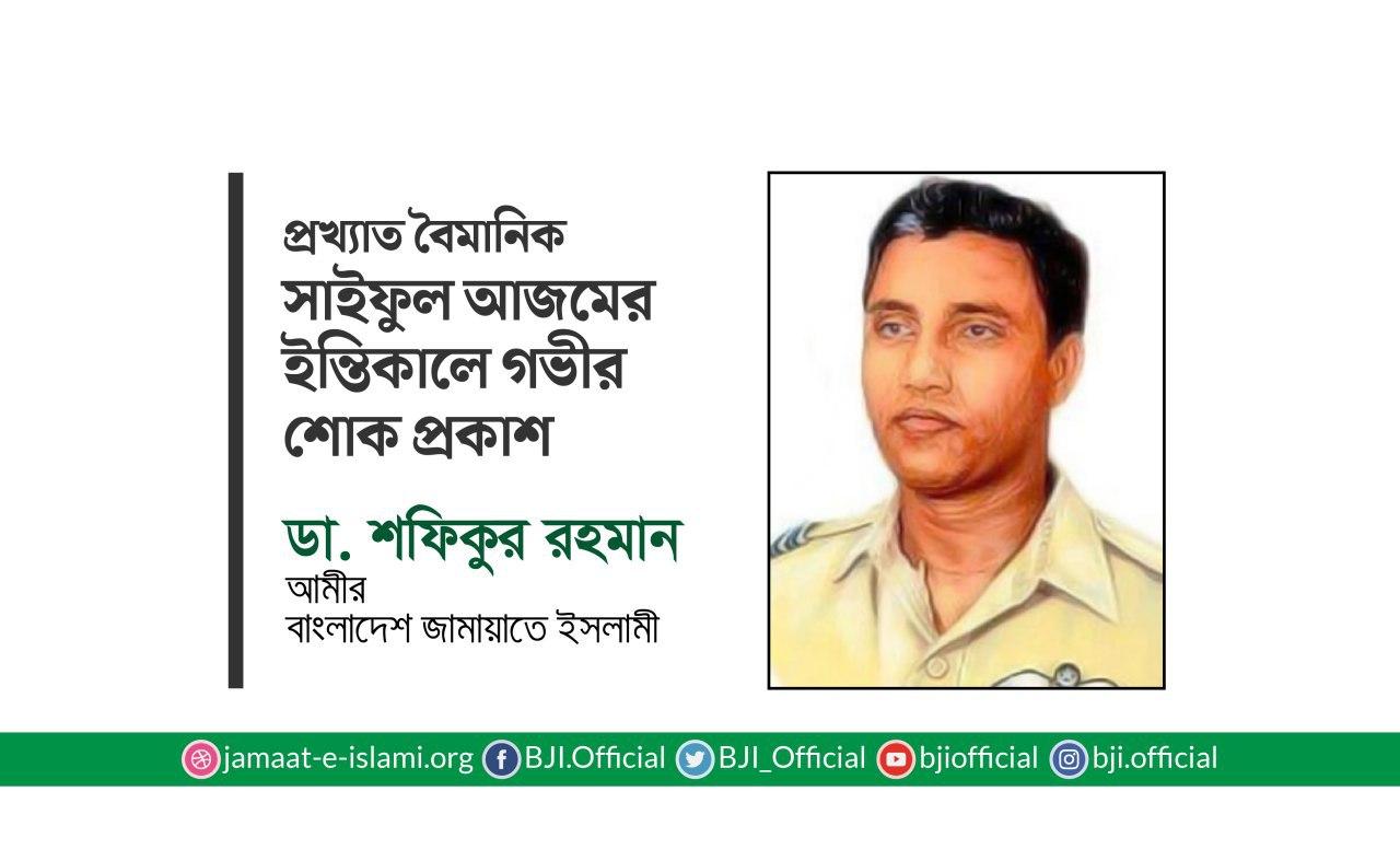 প্রখ্যাত বৈমানিক সাইফুল আজমের ইন্তিকালে গভীর শোক প্রকাশ