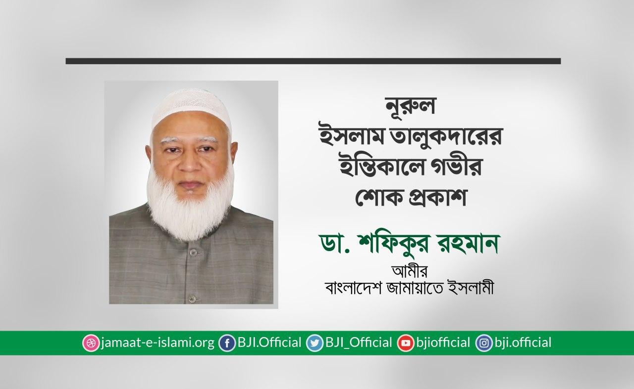 নূরুল ইসলাম তালুকদারের ইন্তিকালে গভীর শোক প্রকাশ