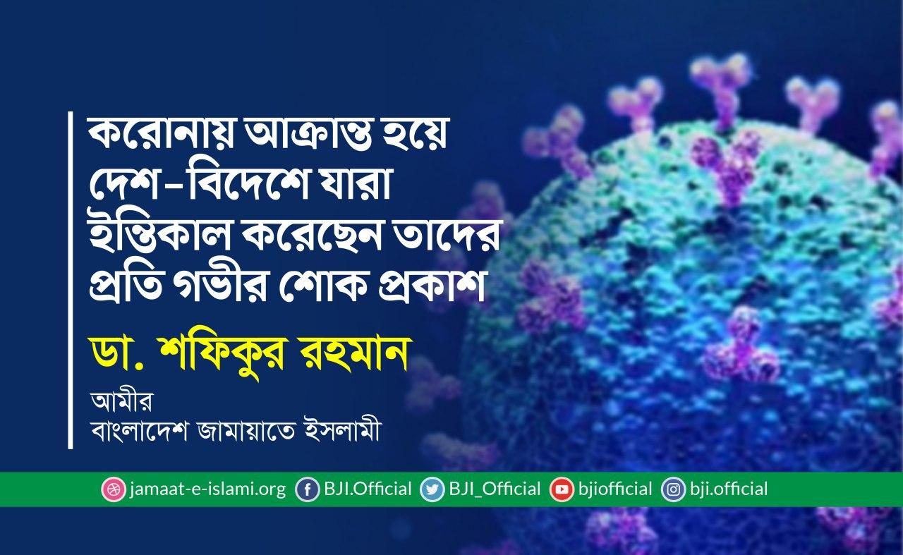 করোনায় আক্রান্ত হয়ে দেশ-বিদেশে যারা ইন্তিকাল করেছেন তাদের প্রতি গভীর শোক প্রকাশ