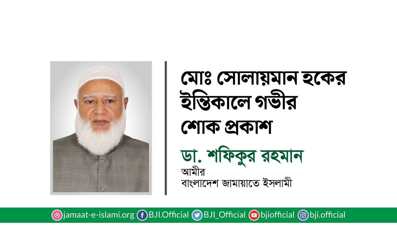 মোঃ সোলায়মান হকের ইন্তিকালে গভীর শোক প্রকাশ