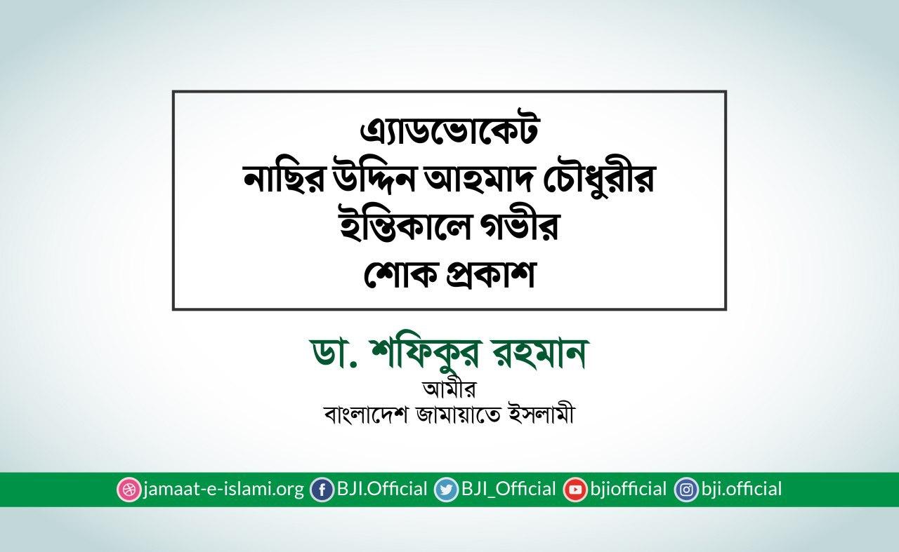 এ্যাডভোকেট নাছির উদ্দিন আহমাদ চৌধুরীর ইন্তিকালে গভীর শোক প্রকাশ