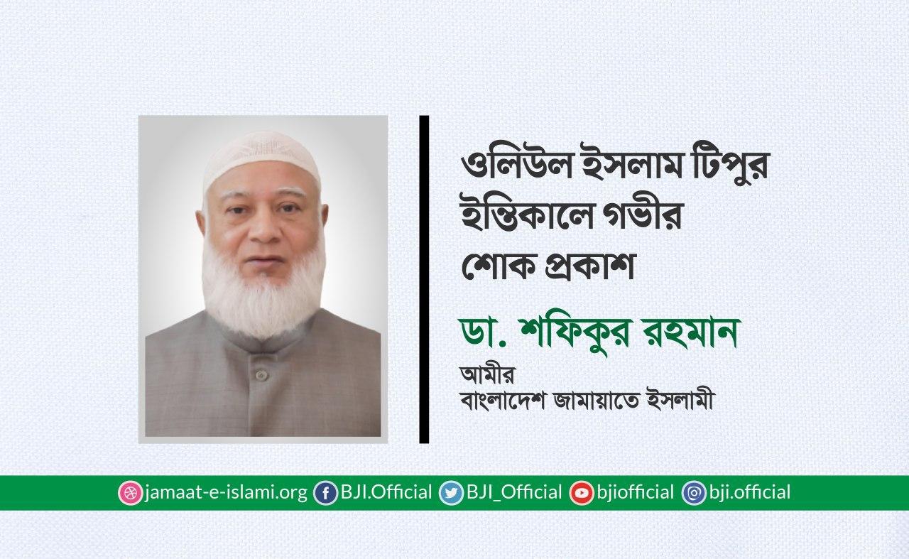 ওলিউল ইসলাম টিপুর ইন্তিকালে গভীর শোক প্রকাশ