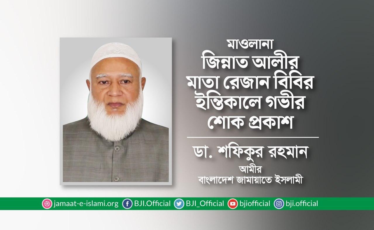 মাওলানা জিন্নাত আলীর মাতা রেজান বিবির ইন্তিকালে গভীর শোক প্রকাশ