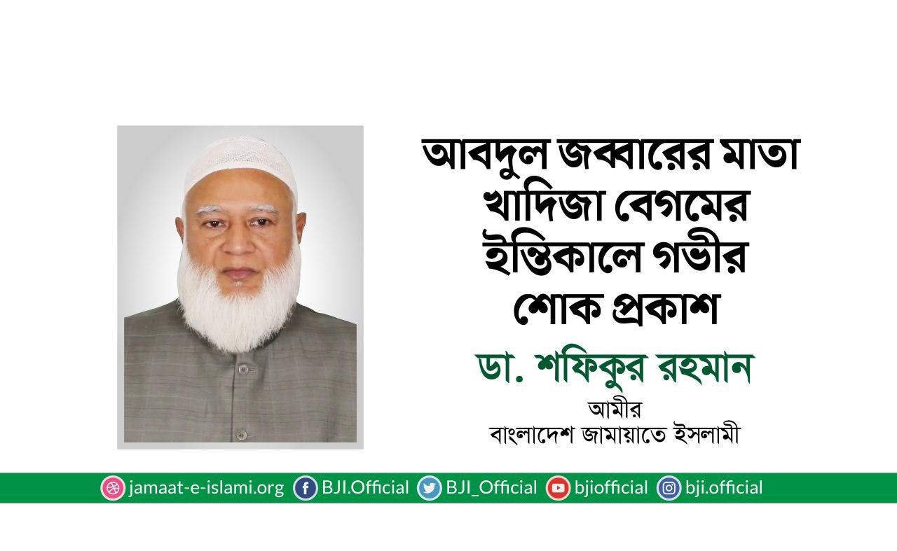 আবদুল জব্বারের মাতা খাদিজা বেগমের ইন্তিকালে গভীর শোক