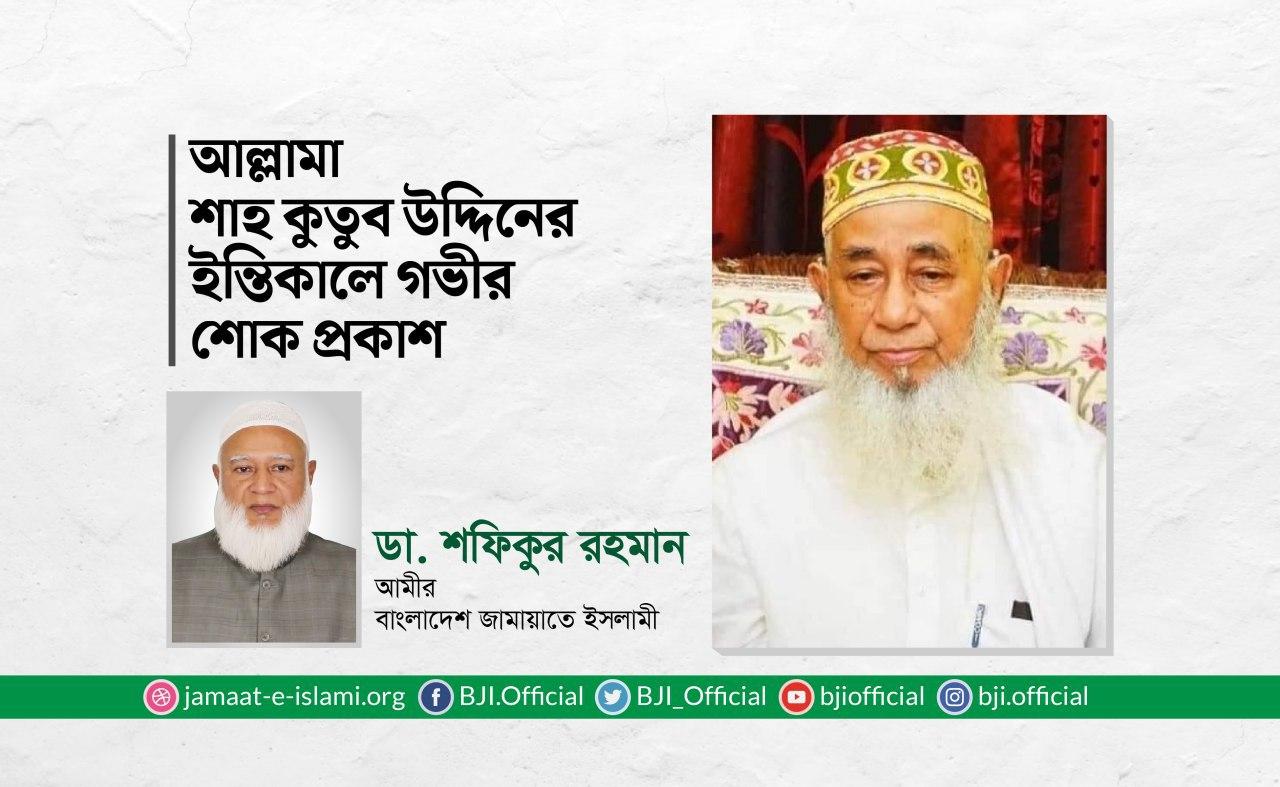 আল্লামা শাহ কুতুব উদ্দিনের ইন্তিকালে গভীর শোক প্রকাশ