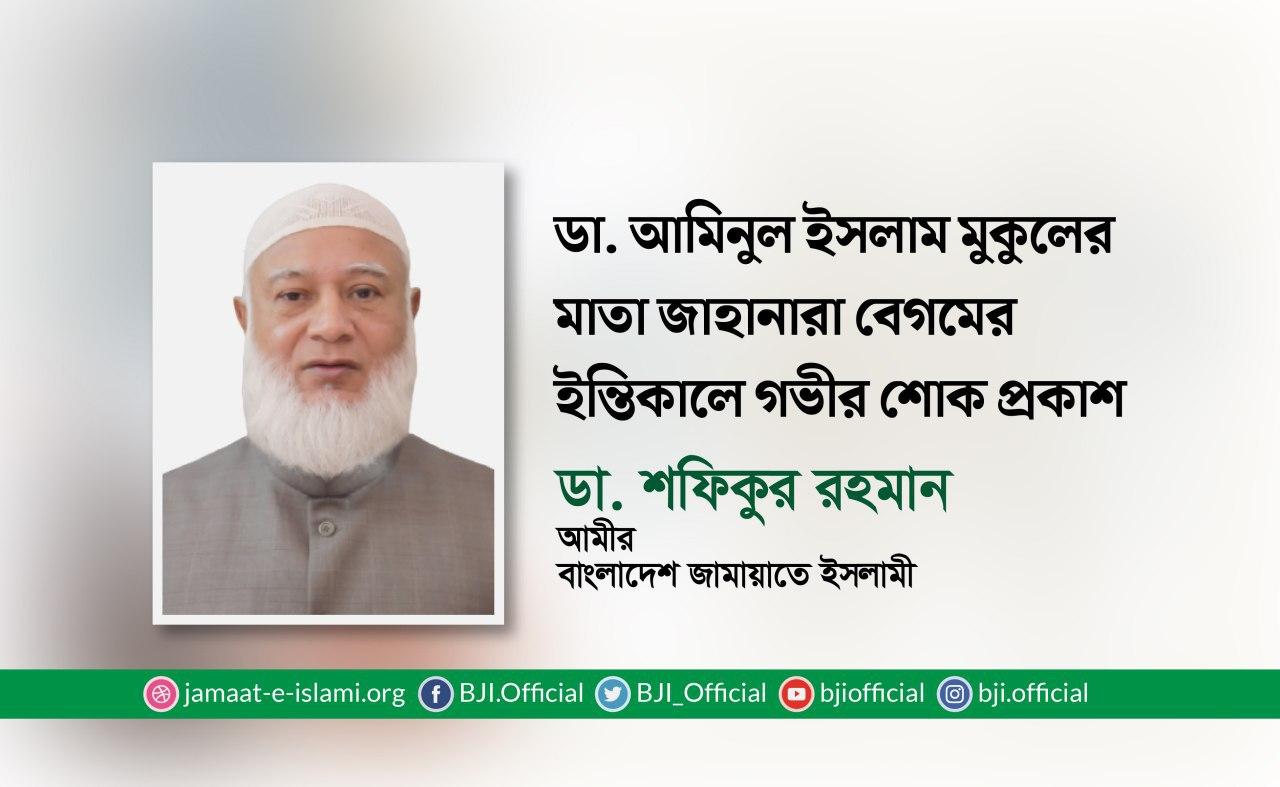 ডা. আমিনুল ইসলাম মুকুলের মাতা জাহানারা বেগমের ইন্তিকালে গভীর শোক প্রকাশ