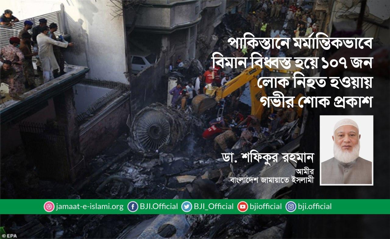 পাকিস্তানে মর্মান্তিকভাবে বিমান বিধ্বস্ত হয়ে ১০৭ জন লোক নিহত হওয়ায় গভীর শোক প্রকাশ