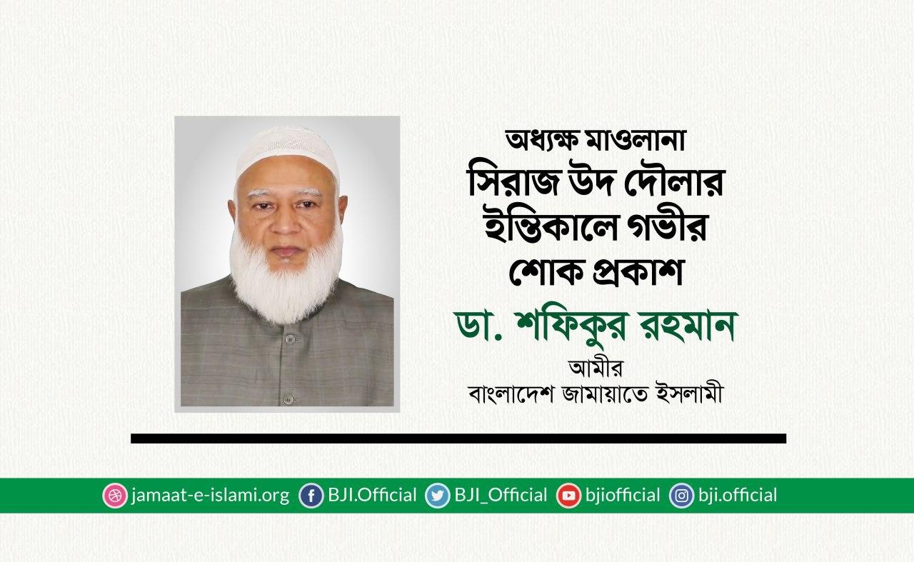 অধ্যক্ষ মাওলানা সিরাজ উদ দৌলার ইন্তিকালে গভীর শোক প্রকাশ