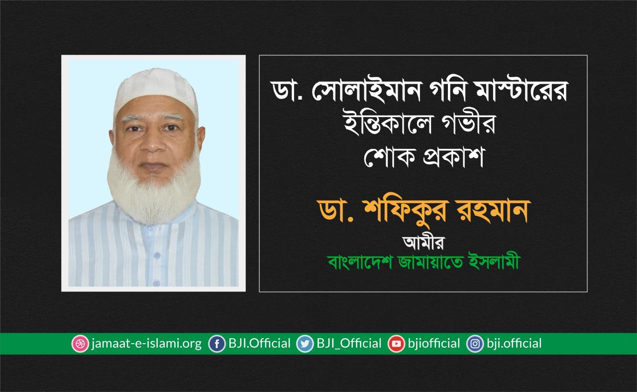 ডা. সোলাইমান গনি মাস্টারের ইন্তিকালে গভীর শোক প্রকাশ