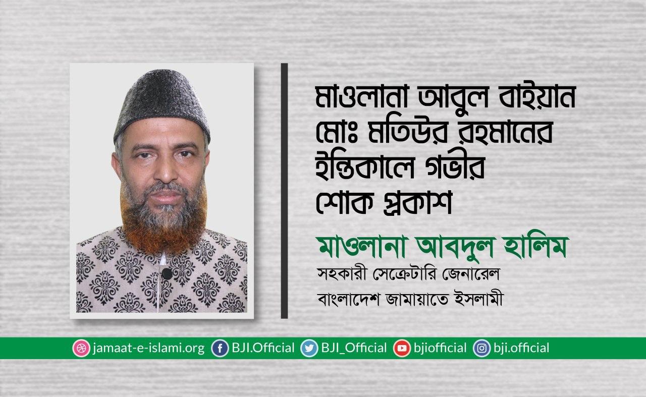 মাওলানা আবুল বাইয়ান মোঃ মতিউর রহমানের ইন্তিকালে গভীর শোক প্রকাশ