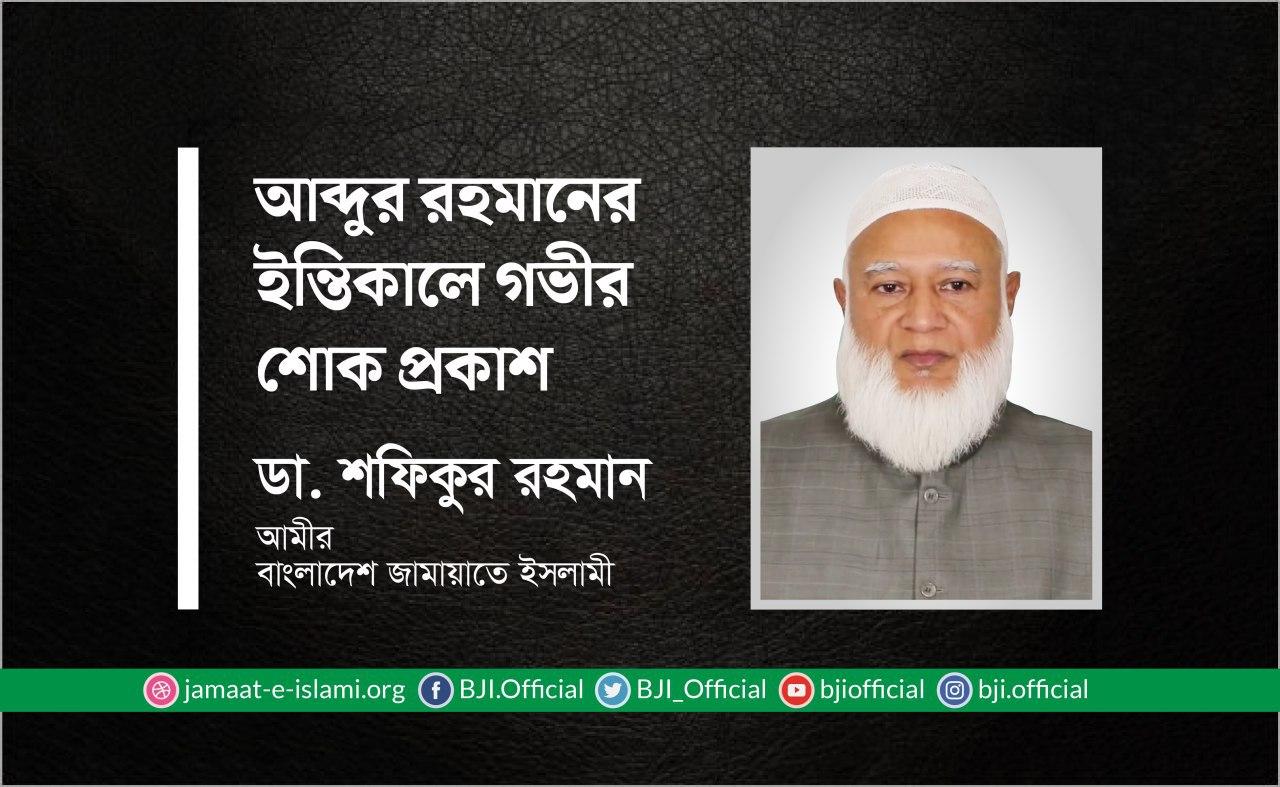 আব্দুর রহমানের ইন্তিকালে গভীর শোক প্রকাশ