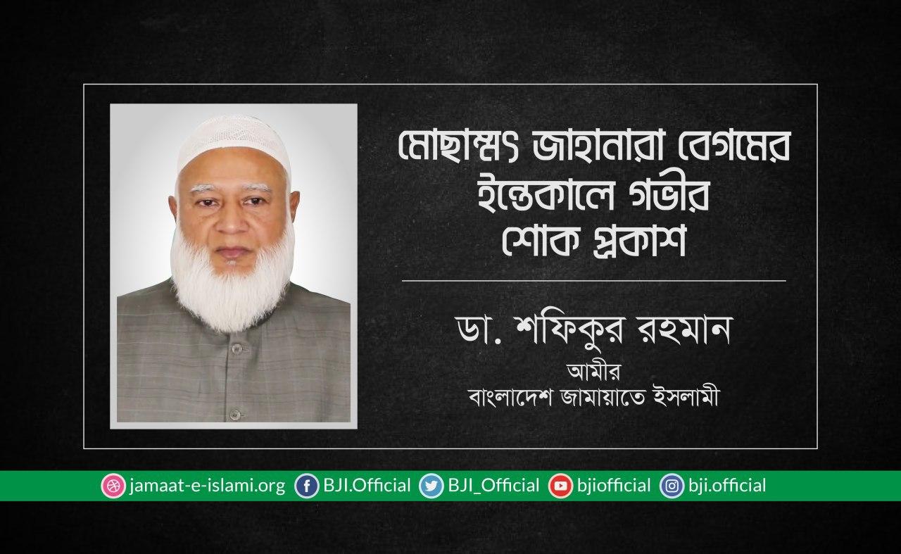 মোছাম্মৎ জাহানারা বেগমের ইন্তেকালে গভীর শোক প্রকাশ
