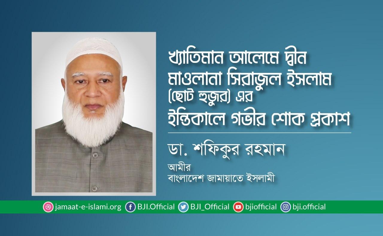 খ্যাতিমান আলেমে দ্বীন মাওলানা সিরাজুল ইসলাম ছোট হুজুরের ইন্তিকালে গভীর শোক প্রকাশ