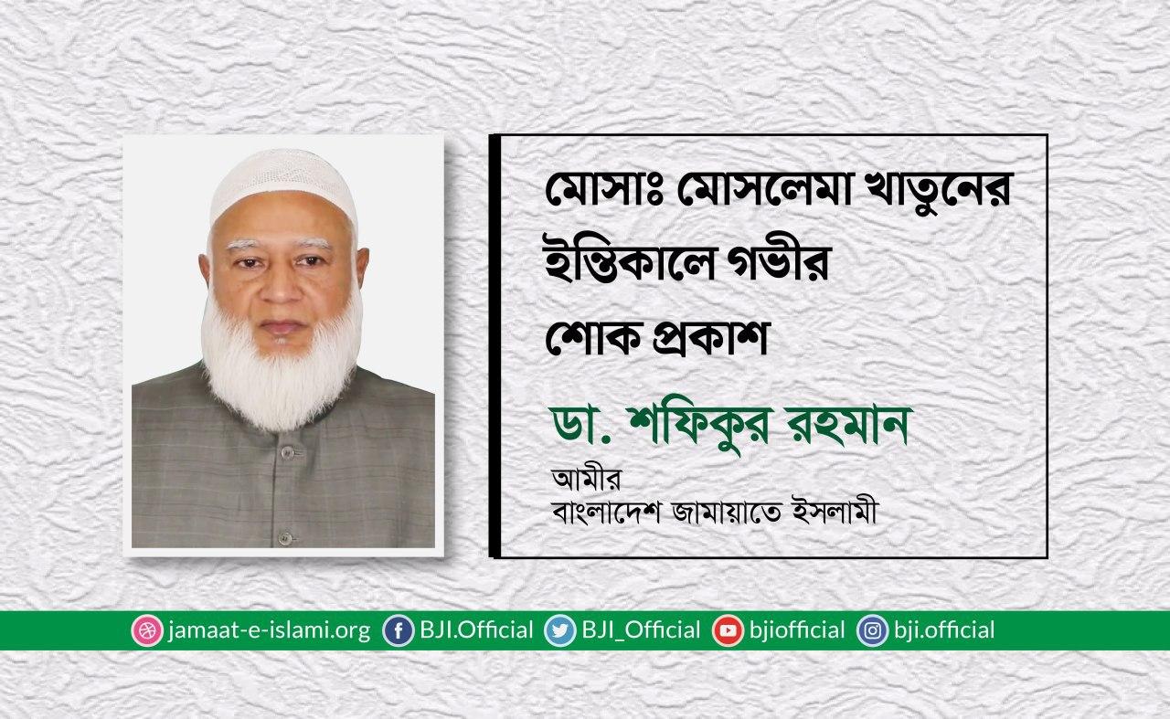 মোসাঃ মোসলেমা খাতুনের ইন্তিকালে গভীর শোক প্রকাশ