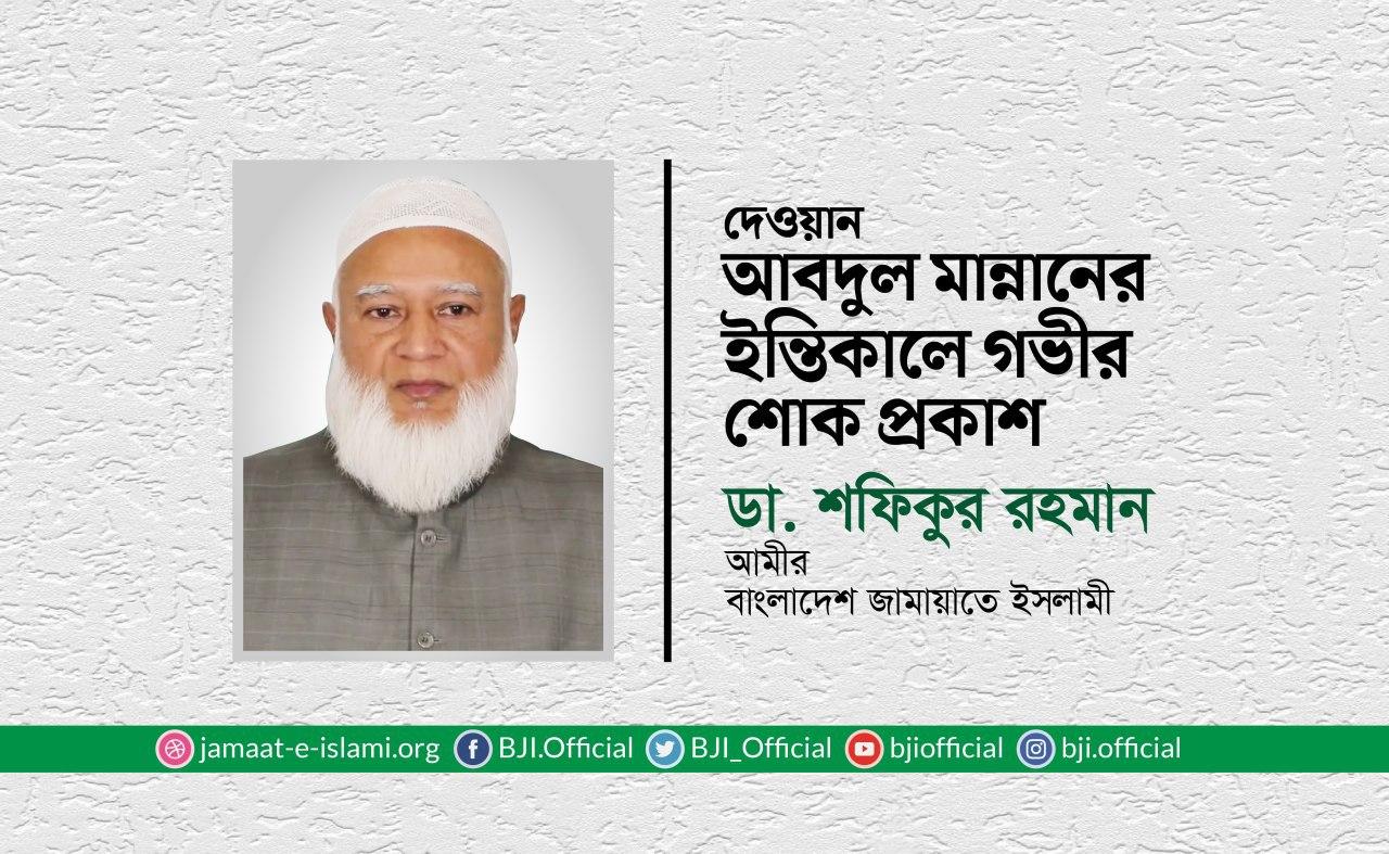 দেওয়ান আবদুল মান্নানের ইন্তিকালে গভীর শোক প্রকাশ