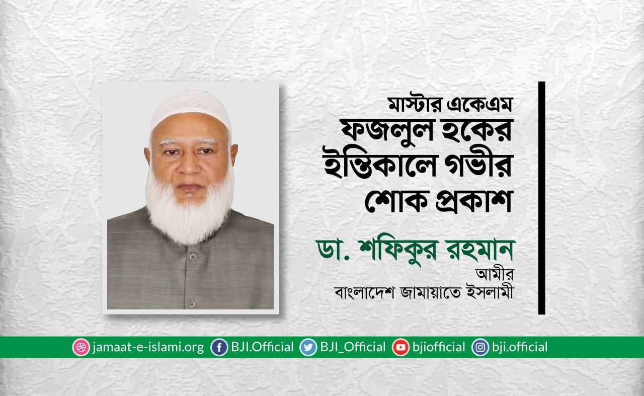 মাস্টার একেএম ফজলুল হকের ইন্তিকালে গভীর শোক প্রকাশ