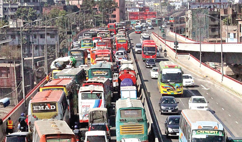 পুলিশের সামনেই নানা ধরনের চাঁদাবাজি ও রাস্তা বন্ধ করে সারি সারি গণপরিবহন রাখা হয়
